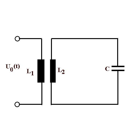 Es sollen verschiedene Kopplungsarten durchgespielt werden. In den Schulbüchern ist meistens induktive Kopplung (Abb. 1) zu finden, vielleicht mit der Idee, dass dabei Schwingkreis und Erreger weitgehend getrennt erscheinen, so dass der Schwingkreis als eigenständiges Gebilde, sozusagen wie ein freier elm. Schwingkreis betrachtet werden kann. Dieser Fall soll als erster theoretisch untersucht werden. Ist die Idee haltbar?