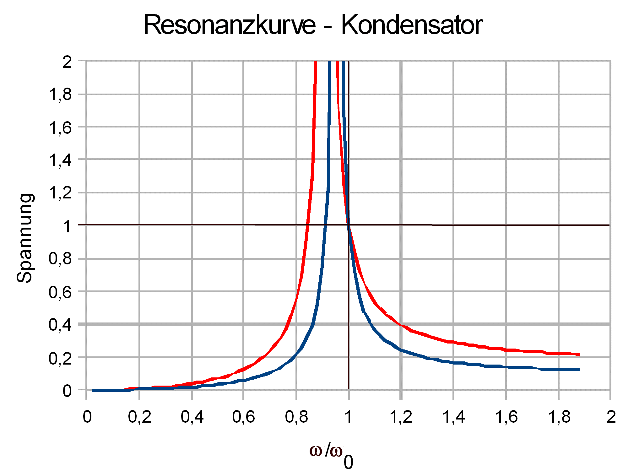 Bemerkung: Eine Dämpfung des Schwingkreises durch einen zusätzlichen internen ohmschen Widerstand ist hier gänzlich vernachlässigt. Sie führt zu einer zusätzlichen - häufig geringen - Verschiebung der Frequenz für das Maximum der Schwingkreisspannung.