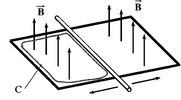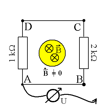 durchstößt. Die Seite des Rahmens, die sich im homogenen Magnetfeld