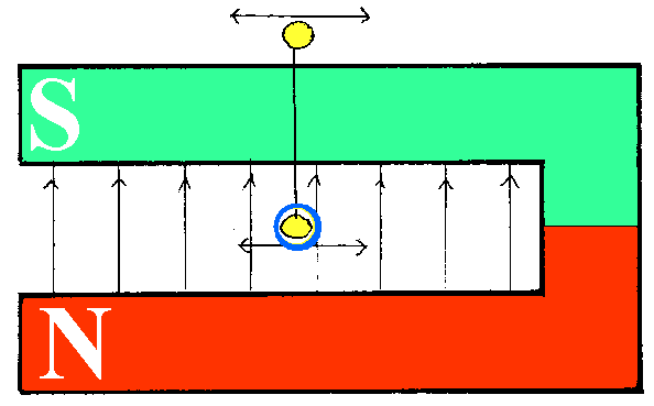 Einer der beiden "schneidenden" Leiterstücke ist magnetisch abgeschirmt,