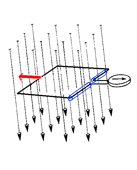 gegenüberliegende Leiterstücke "die magnetischen Feldlinien schneiden".