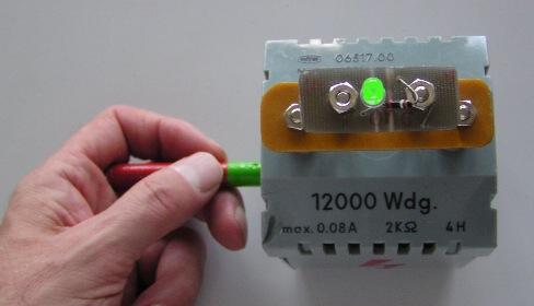In einer Variante ist hier ein kleiner Strommesser auf die Spule