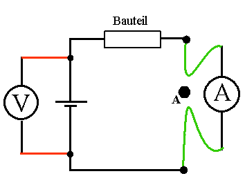 Dazu ist der Stromkreis zu unterbrechen, an die beiden Enden der