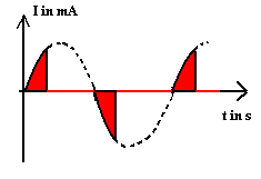 In jeder Periode des Wechselstroms, also jeweils in 1/50 s, wird nur