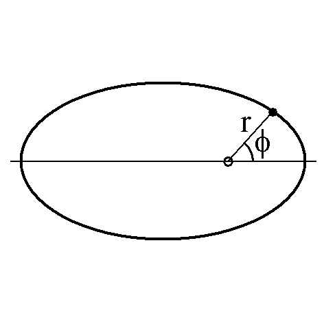 Polarform in Polarkoordinaten mit dem Radius r und dem Winkel φ ( ε numerische Exzentrizität):