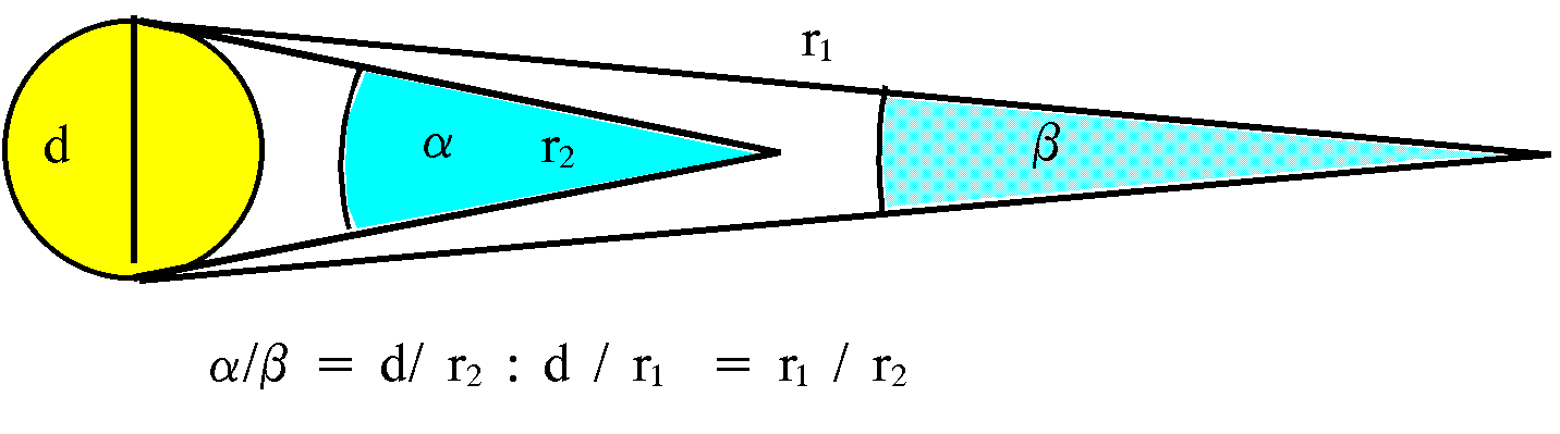 | Aus der nachfolgenden Zeichnung können Sie entnehmen, wie die unterschiedlichen Sehwinkel α, ß mit dem