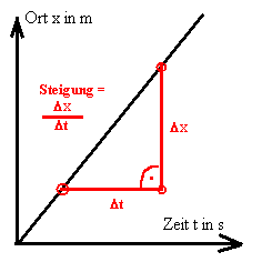 Der Weg vom t-x-Diagramm zur Geschwindigkeit läuft über die Steigung.