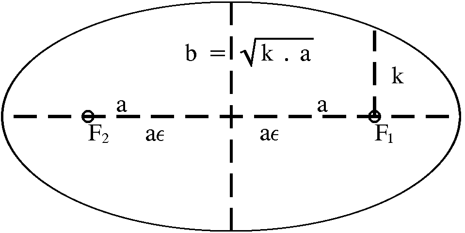 Bahnen gleichen Drehimpulses (pro Masseneinheit) haben deshalb die gleiche Abplattung k und schneiden sich im selben, durch k festgelegten Punkt. |