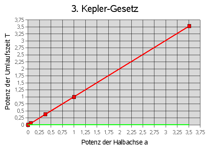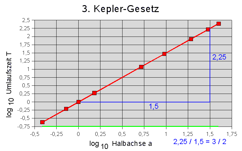 Umlaufszeit T ergibt folgende Graphik, aus der die Exponenten bestimmt werden