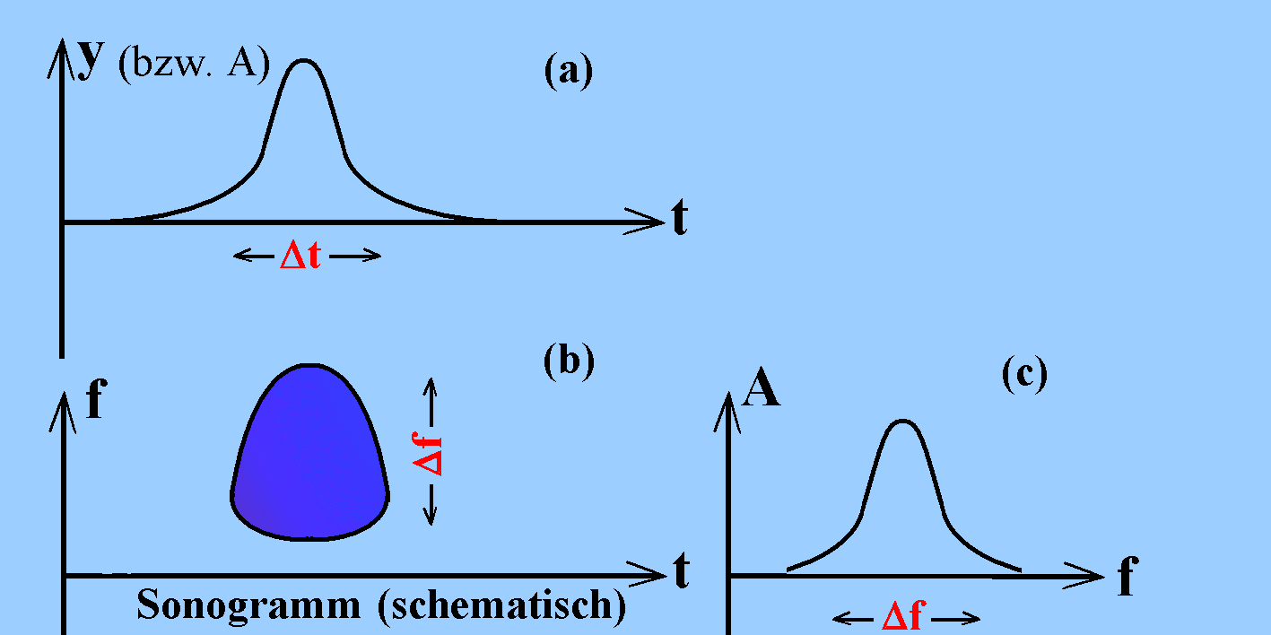 Nach dem Versuchsergebnis ist es plausibel (und es lässt sich auch beweisen), dass das Produkt aus Zeitdauer Δt und Frequenzbreite Δf konstant ist