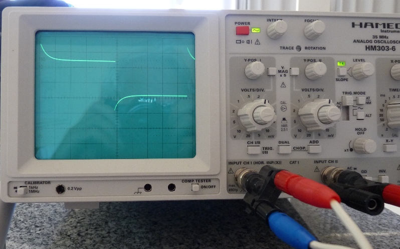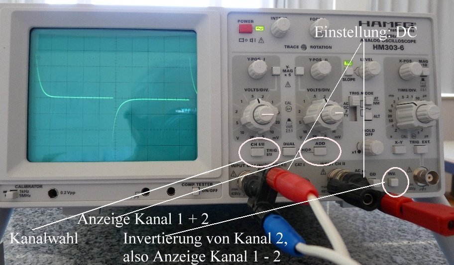 Die charakteristische Zeit (Zeitkonstante) τ bestimmt den Zeitmaßstab bei Ein-/Ausschaltvorgängen. Sie definiert auch ein Maß für die Messrate bei Messungen mit einem Messinterface. Erst, wenn τ in der Größenordnung von 1 s ist, sind on-line-Messungen (z.B: mit dem Programm GRAFTERM) sinnvoll. |