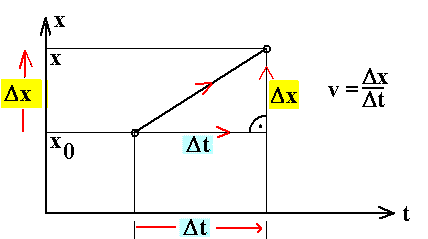 . Diese Gleichung wird so gelesen: Wenn bei einer solchen Bewegung in einem Zeitabschnitt Δt eine Ortsänderung Δx erfolgt, ist Geschwindigkeit gleich der Ortsänderung Δx pro Zeitabschnitt Δt. |
