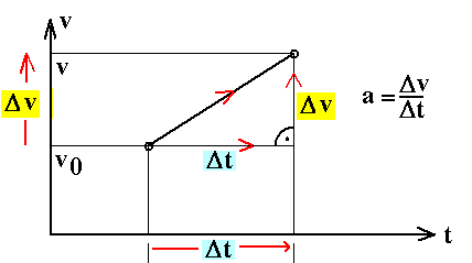 Diese Gleichung wird so gelesen: Wenn bei einer solchen Bewegung in einem Zeitabschnitt Δt eine Geschwindigkeitsänderung Δv erfolgt, ist Beschleunigung a gleich der Geschwindigkeitsänderung Δv pro Zeitabschnitt Δt. |