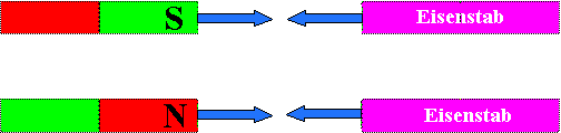 entlang, so wird auch der Eisenstab magnetisch und erhält einen N-