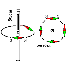 Feldes. Der N-Pol der Magnetnadeln scheint zu einer bestimmten