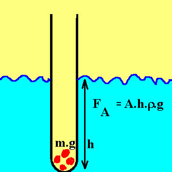 (Bleischrot) beschwerte Reagenzglas taucht so tief ein, bis KGG