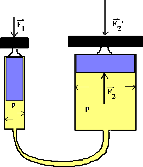 2. In miteinander verbundenen Gefäßen (Zylindern), die mit Gas oder Flüssigkeit gefüllt sind, herrscht überall der gleiche Druck. |