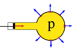 Genauso entsteht ein Spannungszustand im eingeschlossenen Gas oder einer eingeschlossenen Flüssigkeit in einer Spritze, wenn du bei geschlossener Austrittsöffnung auf den Stempel drückst. Häufig nennt man das zylindrische Gefäß der Spritze Zylinder; der Stempel heißt oft auch Kolben, besonders beim PKW sind Zylinder und Kolben die Grundlage für die Funktion des Motors und von Bremsen.
