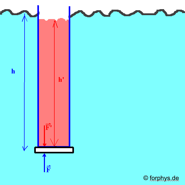 dagegen mit einer Kraft F = ρ·g·h·A.