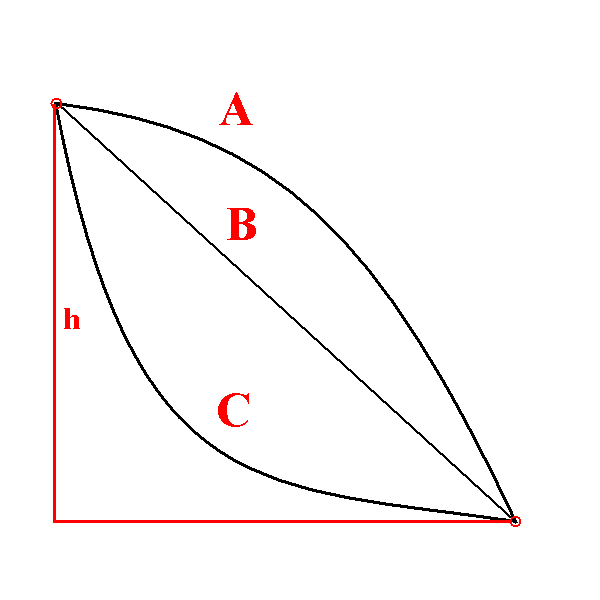 Es ist zu verführerisch: Auf jedem Weg erreicht sie die gleiche Geschwindigkeit! Aber: Auf dem Weg A bleibt die Kugel lange sehr langsam. Erst am Schluss holt sie den Rückstand auf. Für die erste Hälfte der Bahn braucht sie viel Zeit. Kann sie dieses Manko auf der zweiten Hälfte wieder gut machen? Auf welchem Weg wird also die Kugel am schnellsten den Boden erreichen? |