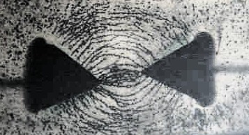 Hier siehst du Fotos von Feldlinienbilder, die mit Grieskörnern näherungsweise sichtbar gemacht werden. |