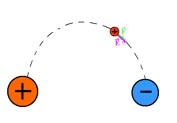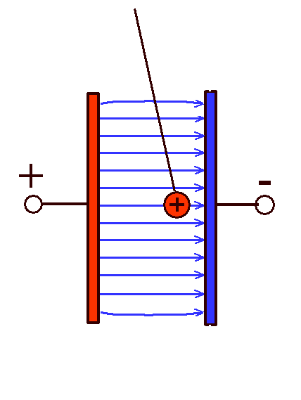 | Wenn das elektrische Feld durch positive und negative Ladungen erzeugt wird (felderzeugende Ladungen), ist das elektrische Feld längs einer elektrischen Feldlinie von der positiven zur negativen Ladung gerichtet. |