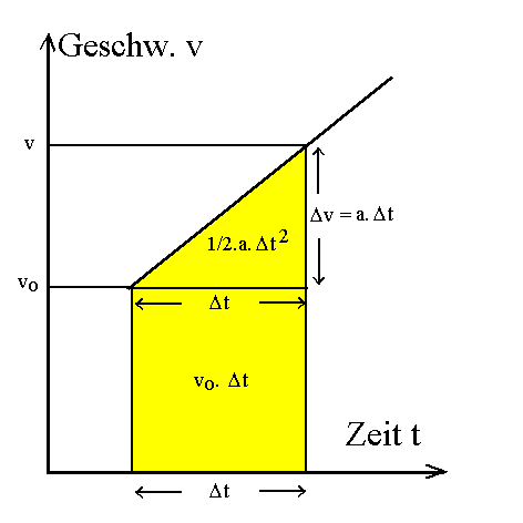 | v jetzt (Anfangsgeschwindigkeit v0) | Beschleunigung a | Zeitabschnitt Δt | Geschwindigkeitsänderung im Zeitabschnitt Δt |