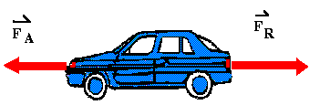 Betrachte einen PKW, der auf der geradlinigen und horizontalen Autobahn mit Vollgas fährt. Die auf ihn wirkende Antriebskraft FA wird vielleicht maximal sein, aber die Beschleunigung ist 0, da der PKW bereits seine Höchstgeschwindigkeit erreicht hat. Trotz maximaler Kraft keine Beschleunigung? Dies scheint dem 2. Gesetz von Newton zu widersprechen. Der Fehler in der Überlegung ist, dass eine weitere Kraft außer Acht gelassen wurde, die Reibungskraft (zusammengesetzt aus Luftreibungskraft und Reibung zwischen Rädern und Straße). Die Reibungskraft FR ist entgegengesetzt zur Antriebskraft FA gerichtet. Tatsächlich hebt in diesem Fall die Reibungskraft die Antriebskraft gerade auf. Die Gesamtkraft auf den PKW ist 0, genauso wie die Beschleunigung! Also: Du musst dir zum 2. Gesetz von Newton mit hinzu denken, dass F immer die Gesamtkraft ist, die auf den Körper wirkt. |