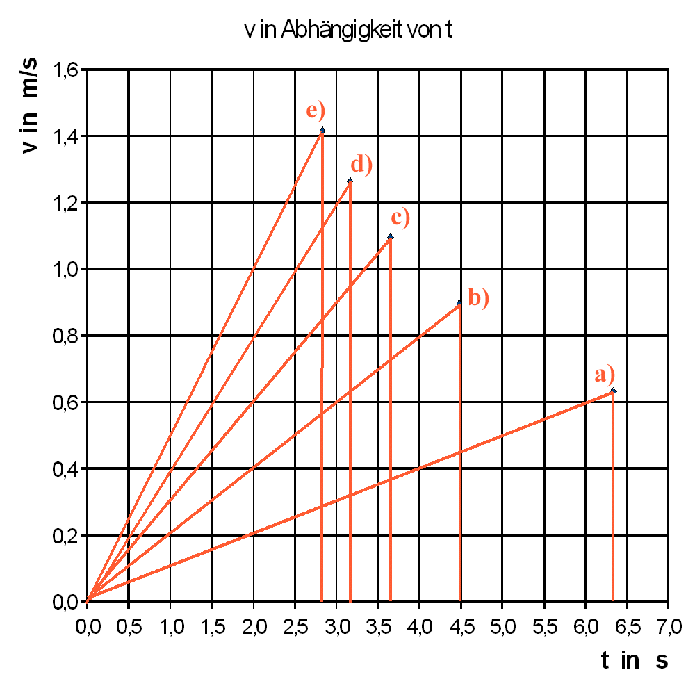 Zeichne zum oben gezeichneten t-v-Diagramm ein a-F-Diagramm. Ermittle aus ihm die Masse m des beschleunigten Körpers.
