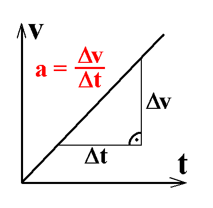 Es wird ein t-v-Diagramm aufgenommen wie links dargestellt. Die Steigung des t-v-Diagramms ist die Beschleunigung a: Geschwindigkeitsänderung pro Zeitabschnitt. Auf dem Bildschirm wird ein Steigungsdreieck eingetragen. Glatte Werte für Δt erleichtern die Berechnung von a = Δv/Δt.