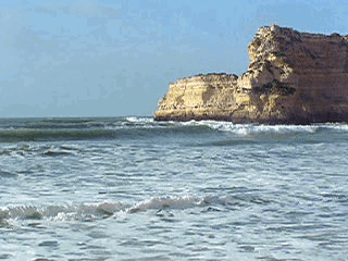 | (1) Wenn du dir ein Video über Meereswellen anschaust, so fallen dir gleich zwei offensichtliche Bewegungen auf: eine Bewegung gegen das Ufer hin und eine Bewegung auf und ab, an denen offenbar die Wasserteilchen teilnehmen. | (2) Eine Wellenbewegung in einer Seilwelle oder einem "Federwurm" zeigt das noch deutlicher: einerseits bewegen sich kurze Abschnitte des Seils senkrecht zum Seil hin und her, andererseits schreitet der Bewegungszustand dieser Teilchen in Seilrichtung fort. Besonders auffällig wird das bei einem einmaligen Schlag auf das Seil quer zur Längsrichtung des Seils. |