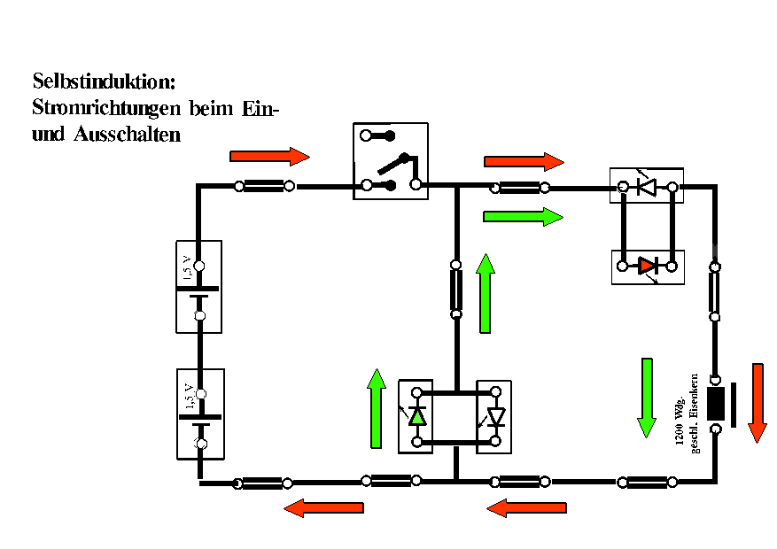 Zu den Stromrichtungen bei der Grundschaltung der Selbstinduktion vgl. SG104b